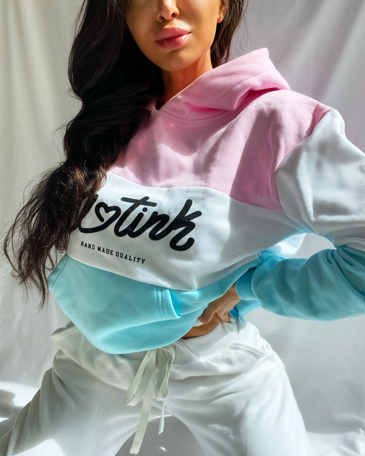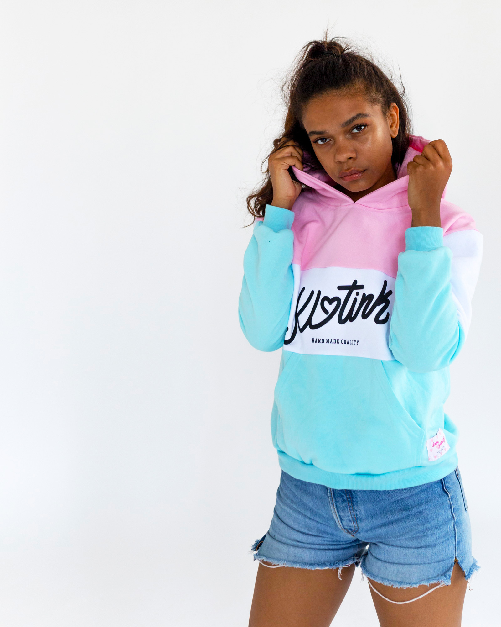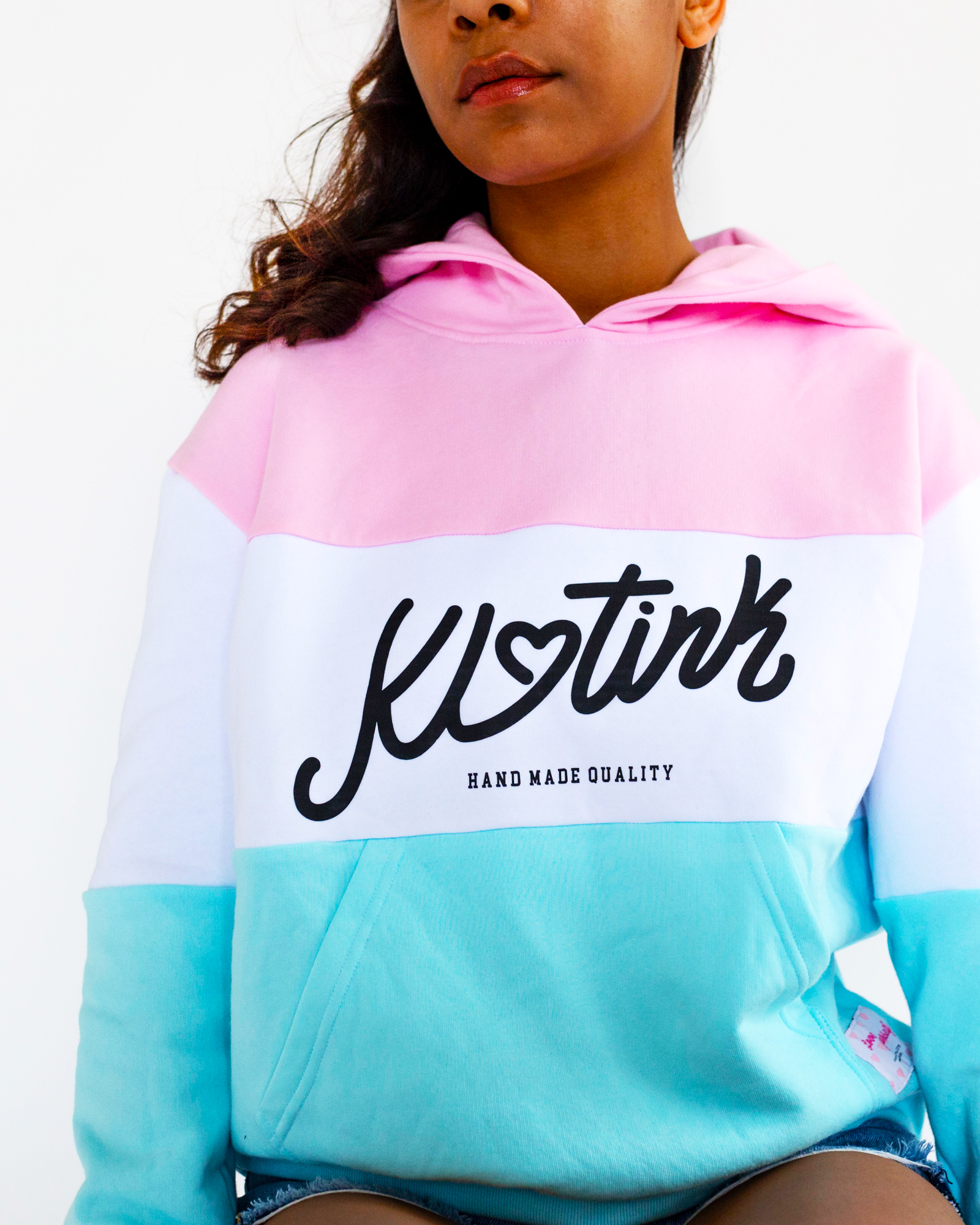 Klasická dámska oversize mikina. Mikiny je vyrobená z počesanej bavlny. Materiál: 100%bavlna Farba: Ružová / biela / tyrkysová Vyrobená na Slovensku.