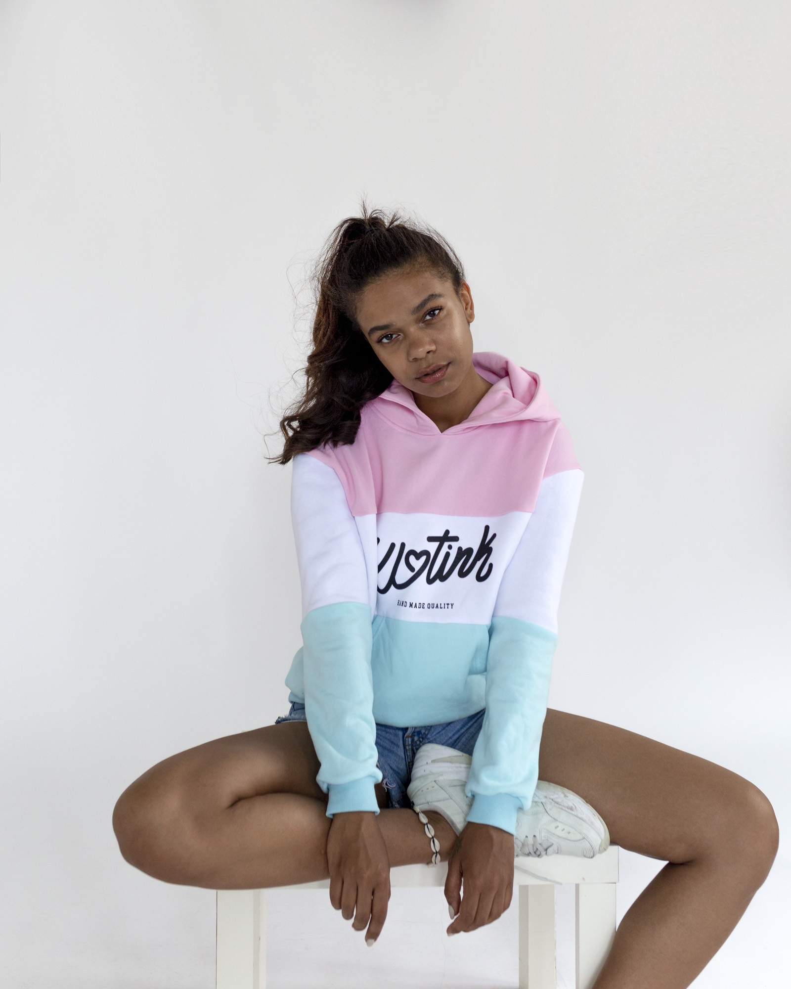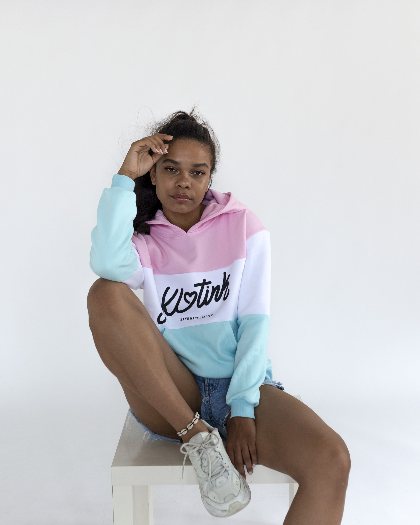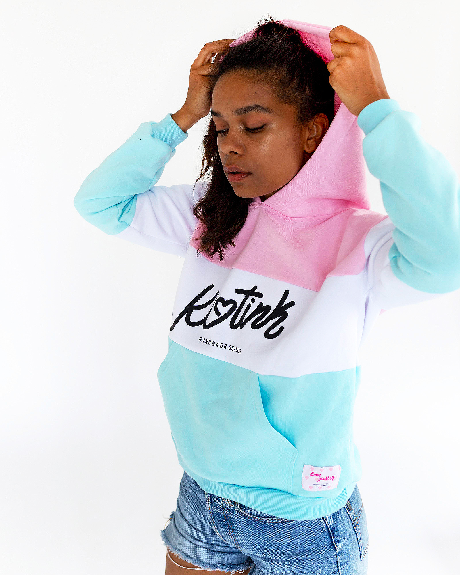Klasická dámska oversize mikina. Mikiny je vyrobená z počesanej bavlny. Materiál: 100%bavlna Farba: Ružová / biela / tyrkysová Vyrobená na Slovensku.
