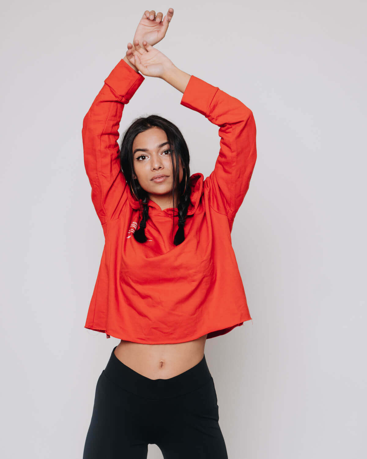 Zahaľ sa do mäkučkej cropovej mikiny v módnej tehlovej farbe. Slušivá skrátená dĺžka a ľahká, jemná, bavlnená látka ti prídu vhod vo vlhkých letných večeroch na fesťáku. Už chytáš ten rytmus?
