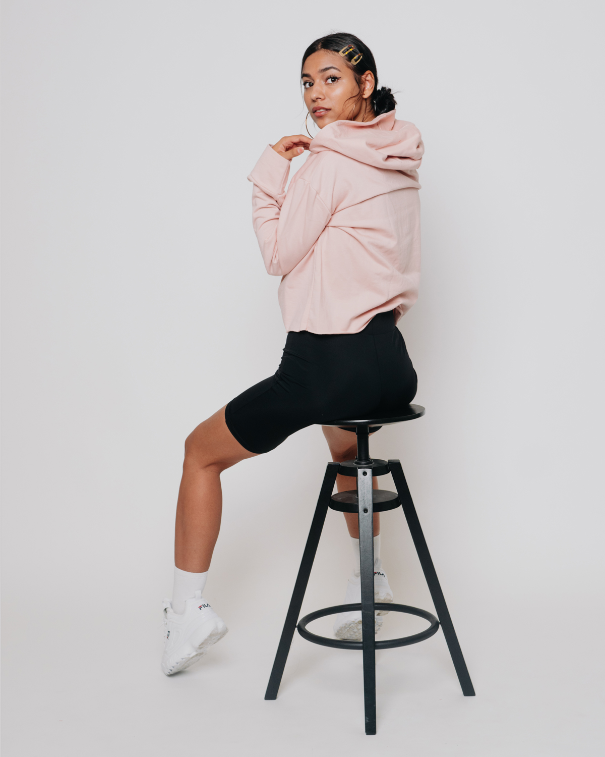 Zahaľ sa do mäkučkej cropovej mikiny v baby ružovej farbe. Slušivá skrátená dĺžka a ľahká, jemná, bavlnená látka ti prídu vhod vo vlhkých letných večeroch na fesťáku. Už chytáš ten rytmus?