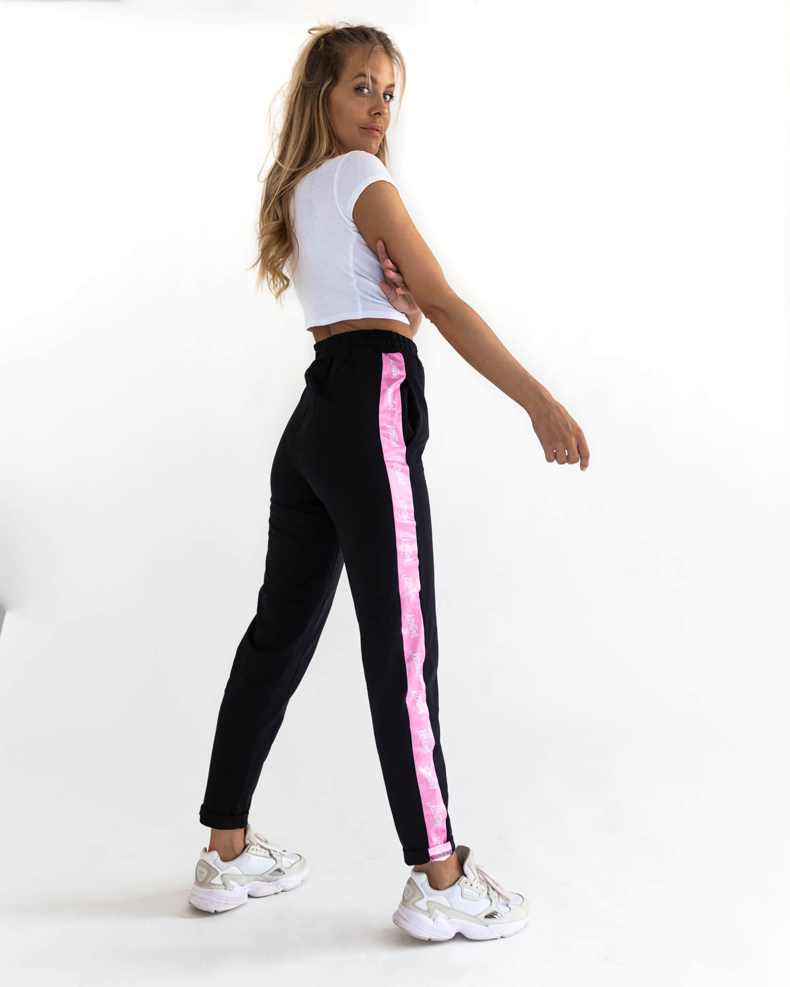 Nech už chceš byť hviezdou festivalu, byť trendy a v pohodlí na cestách alebo chceš vytuniť svoj luxusný outfit, v našich čiernych nohaviciach s ružovým pásom PINK si ťa zaručene každý všimne. Ani v teplých dňoch nemusíš mať strach z nepohodlia. Nohavice sú vyrobené z príjemnej, polyesterovej látky, ktorá je ľahká a maximálne priedušná. Choď do nich a zažiariš!