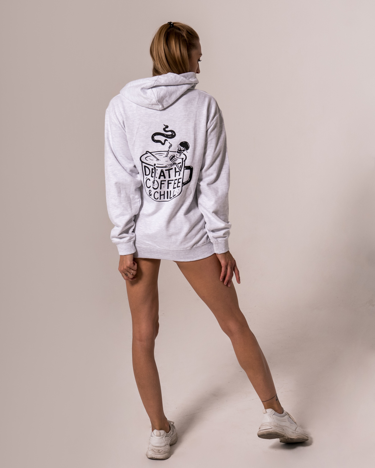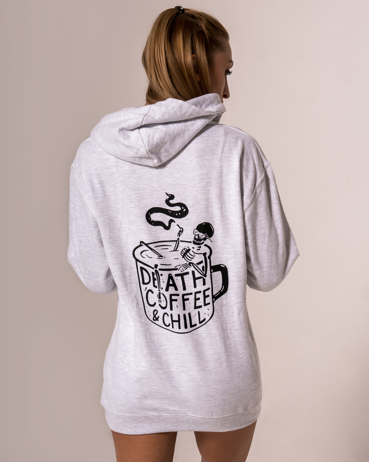 Naša nová unisex mikina s motívom DEATH, COFFEE and CHILL nenechá ani jedného kávo-holika chladným. Mikina je v ležérnom strihu a vďaka česanej vnútornej úprave je hrejivá a príjemná na nosenie. Neopozeraná a zároveň výstižná potlač hovorí za všetko. Kráľovstvo za kávu?